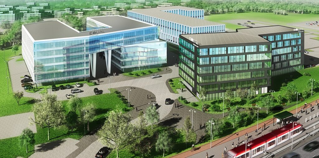 Cały kompleks składa się z czterech budynków (A, B, C, D). Park Equal Business to wygodne i inspirujące miejsce pracy, zintegrowane ze środowiskiem poprzez zrewitalizowany park i nowo wybudowane przejścia, które tworzą wspólną okazję do odpoczynku wśród drzew. Innowacyjne rozwiązania technologiczne sprawiają, że Equal Business Park jest wygodnym miejscem pracy dla najemców. Kompleks został zaprojektowany z myślą o rowerzystach – są tam miejsce parkingowe dla rowerów, szafki i natryski. Wysoki standard wykończenia, proekologiczne rozwiązania, elastyczna aranżacja przestrzeni oraz duże przeszklenia z dostępem do światła dziennego zapewniają komfortowe środowisko pracy.