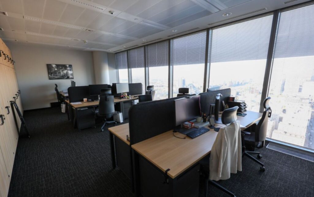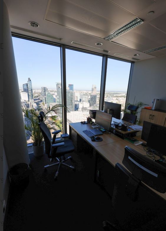 Biura są w pełni umeblowane, dwa osobne moduły 360 mkw i 403 mkw , możliwość wynajęcia dwóch powierzchni lub jedną. Wysokie piętro 33p zapewnia piękny widok i dodaje prestiżu.