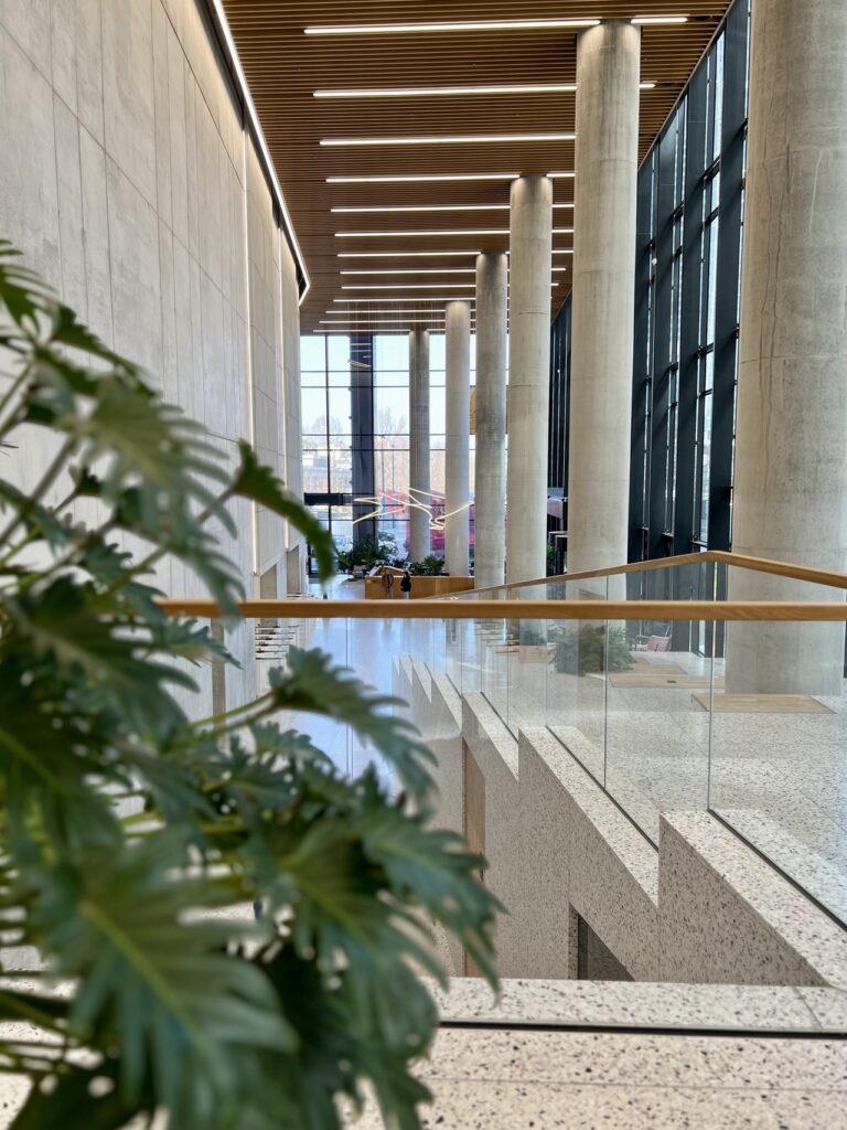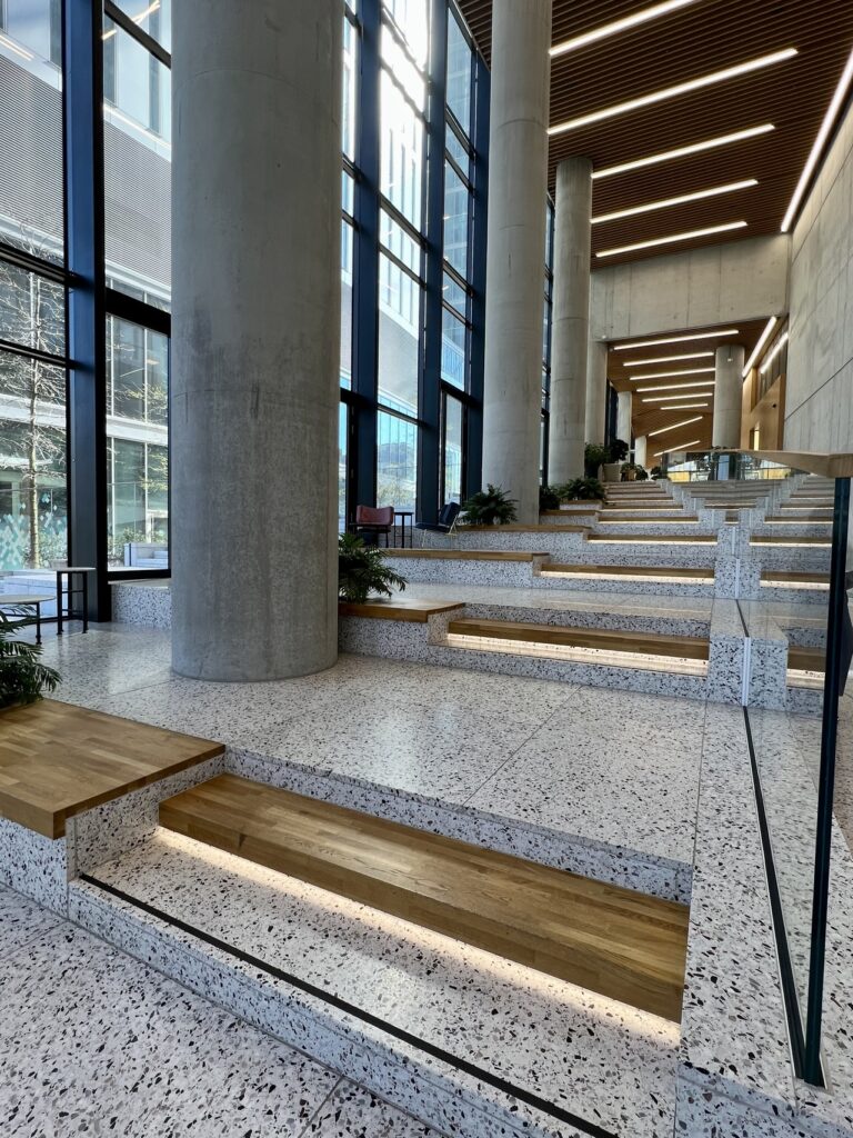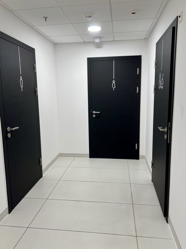 Stojaki na rowery, prysznice i szatnie dla rowerzystów jak również oddzielne pomieszczenia dla hulajnóg