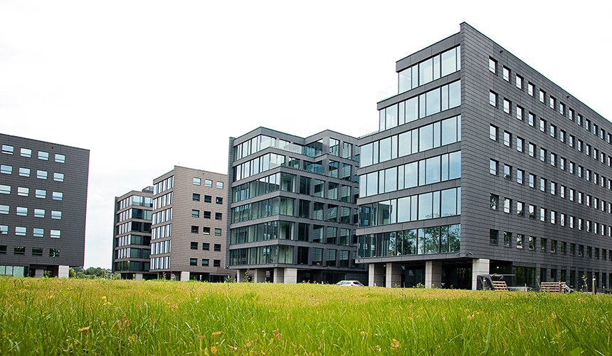 Budynek biurowy wyposażony w pełną klimatyzację, podwieszane sufity, kontrolę dostępu oraz nowoczesny system zarządzania budynkiem