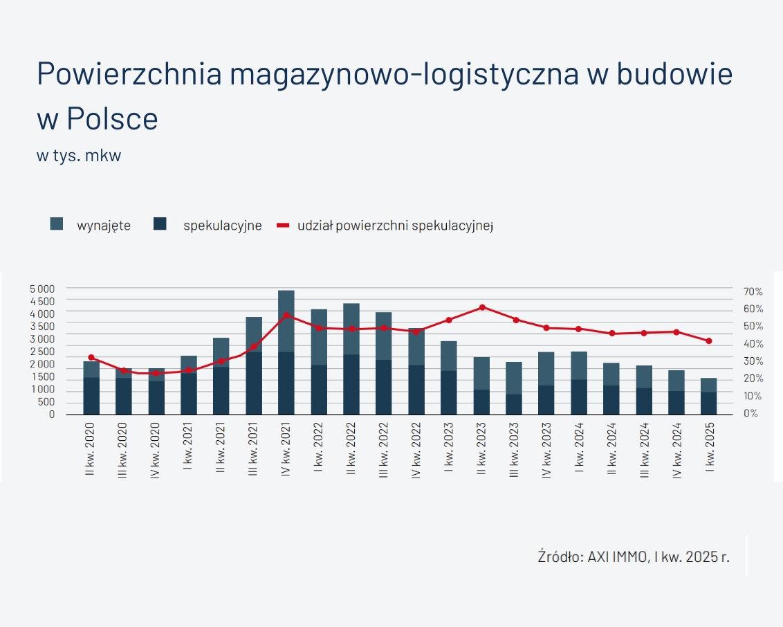 Powyższe dane pochodzą z raportu AXI IMMO Rynek magazynowy w Polsce w I kwartale 2025 roku.