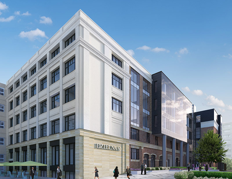 Dzielna 60 is located near Jana Pawla avenue; One of the best developed communication point of Warsaw; 15 minutes to airpoirt Okecie by passenger car; Nearby there are planty of tram and bus stops; 5 minutes to subway station; 35 minutes by passenger car to Chopin airport; 5 minutes to Warsaw by-pass; In vicinity there are shopping centres and and sport & rectreation centres.