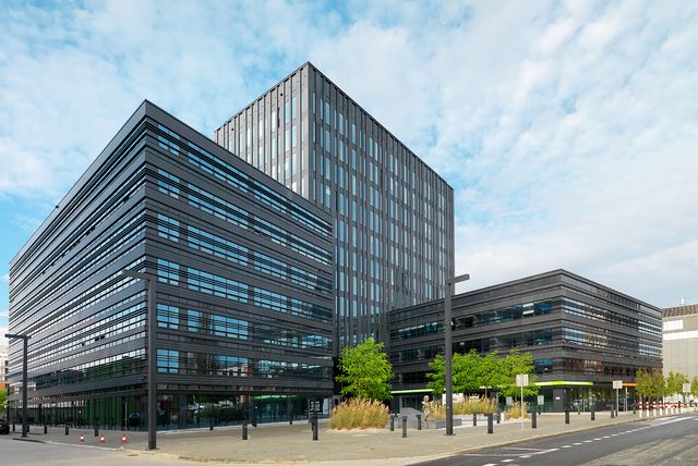A modern office and service complex consisting of 4 interconnected buildings