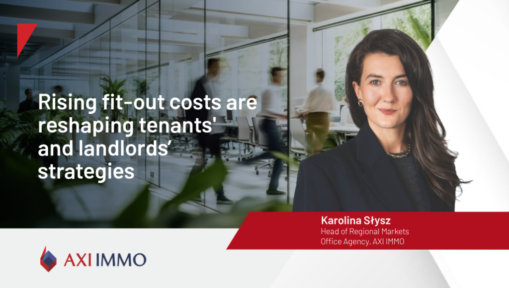 Karolina Słysz, AXI IMMO, concludes: “The current market situation is forcing companies to adopt a more conscious approach to relocation planning and fit-out budgeting. Differences between fit-out standards are becoming increasingly pronounced, while available budgets are ever more disproportionate to actual costs. As a result, decisions regarding space selection, lease length and the scope of arrangement works are becoming one of the key elements of every organisation’s office strategy”.