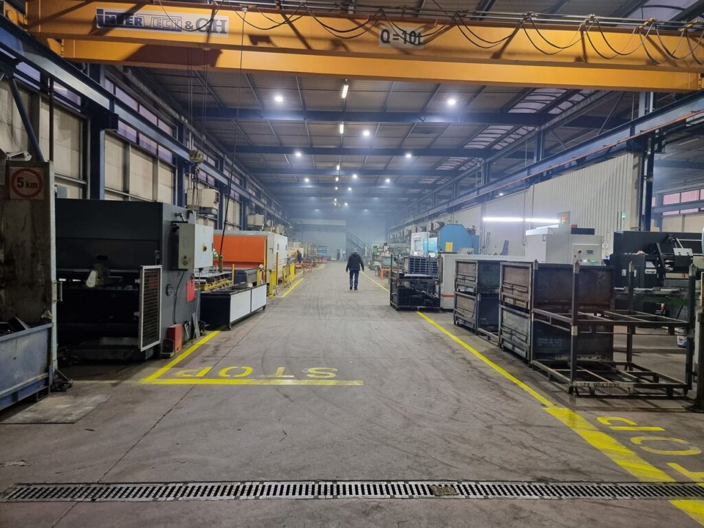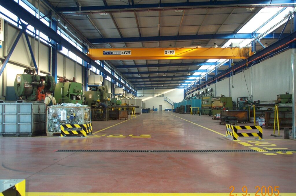 Division of the hall area into zones adapted to various types of production.