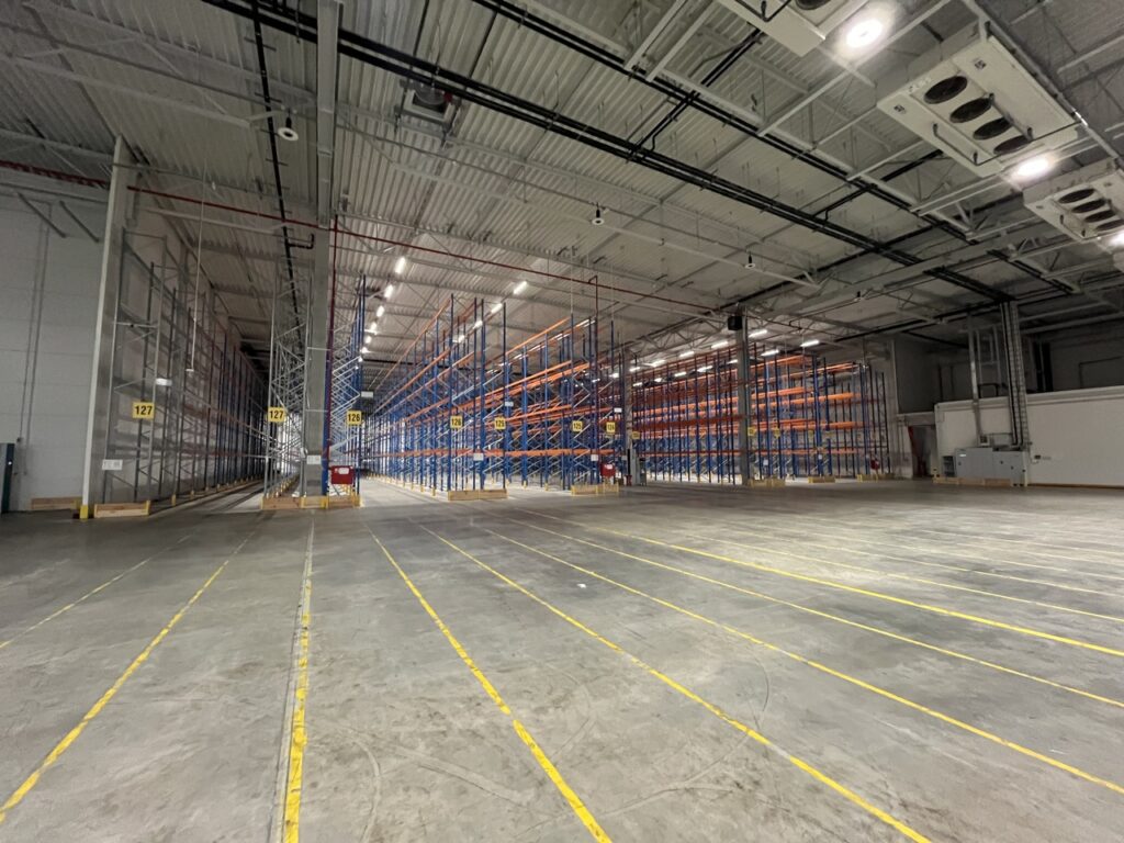 A modern warehouse adapted for storing products at low, controlled temperatures
