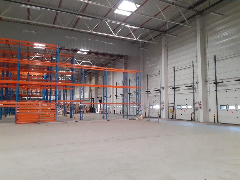 The Distribution Park Będzin – warehouses complex for rent in Silesia consists of three buildings with a total area of 54,545 sq m. There are high storage facilities (up to 10 metres), meeting class A standards. Goods are distributed using transhipment doks and level”0″ gates. Each buildings has been wquipped with a non-dusting floor with a load capacity of 5 t/sq m, sprinkler system and heating. Tenants have at their disposal numerous parking places for cars and trucks, located within the fenced and protected complex.