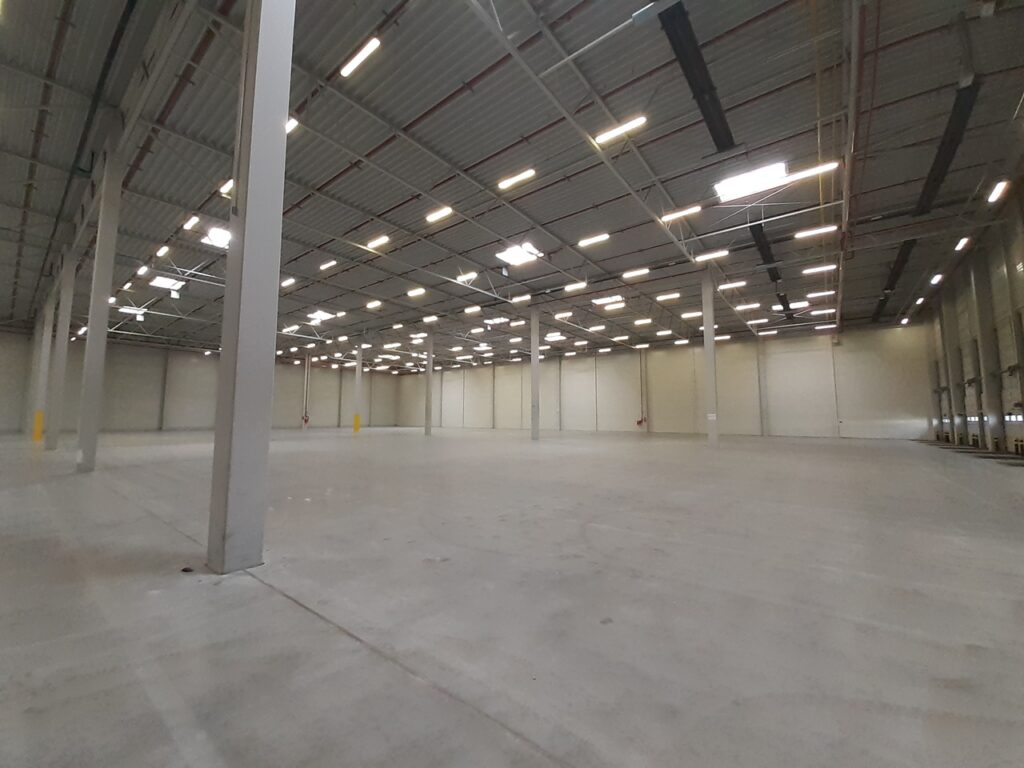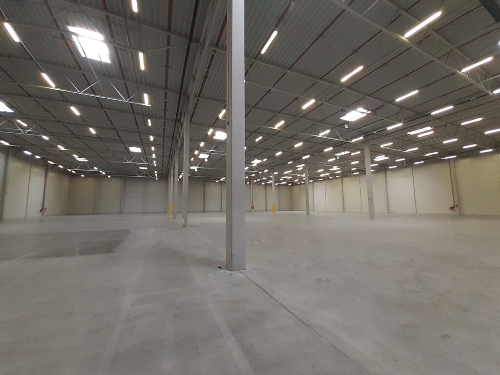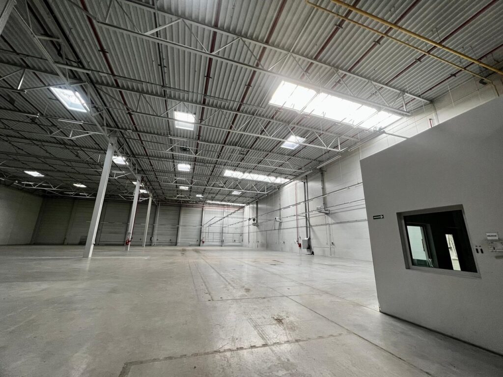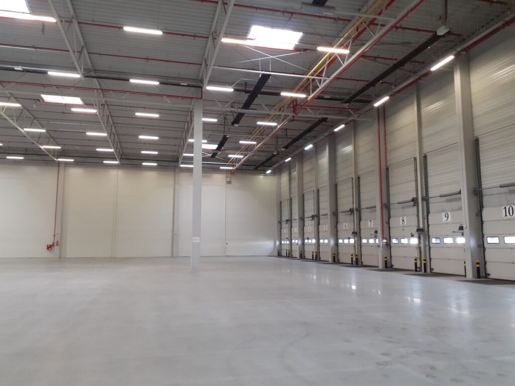 Warehouse space for rent in Sosnowiec has been designed and built in compliance with the A class standard and can be used as storage or production hall.