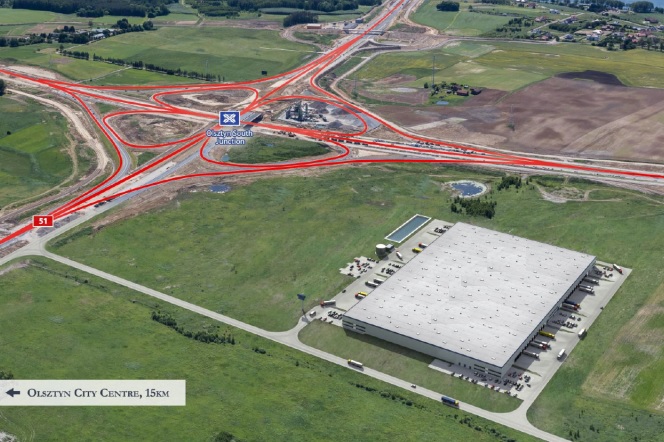 The north-eastern part of Poland, in the Warmia -Masury region; A modern warehouse is located south of Olsztyn, in the Tomaszkowo; Approx.. 10 minutes by car to Olsztyn; Warehouse directly at the Olsztyn Południe junction at the S51 and S16 express roads; The S51 road enables quick access to Olsztyn as well as to Olsztynek and the European route E77 (S7), which allows access to Ostróda, further to Elbląg and Gdańsk, and in the opposite direction to Nidzica, Mława, Płońsk, Nowy Dwór Mazowiecki and Warsaw; The S51 road leads towards the road border crossing with Russia in Bezledy (Bezledy-Bagrationowsk); The Olsztynek Zachód road junction on the S7 route is about a 14-minute drive from the property; In Olsztyn, which is the capital of the Warmian-Masurian Voivodeship and the largest city in the region, there are industries of wood, furniture, food, printing as well as building materials; The air connection enables the Olsztyn-Mazury airport in Szymany, which is about 55 km away. to the south-east from the centre of Olsztyn. The airport can be reached from Olsztyn by own transport as well as a bus and bus carrier. The Olsztyn-Mazury airport is an international airport with full infrastructure prepared for servicing cruise and charter passengers. The airport serves direct international flights from London, Dortmund, Lviv, Burgas, Cologne in Germany, as well as domestic flights from Krakow. In the airport, there is a rental of passenger cars, thanks to which you can easily get from the airport in Szymany to neighbouring towns.