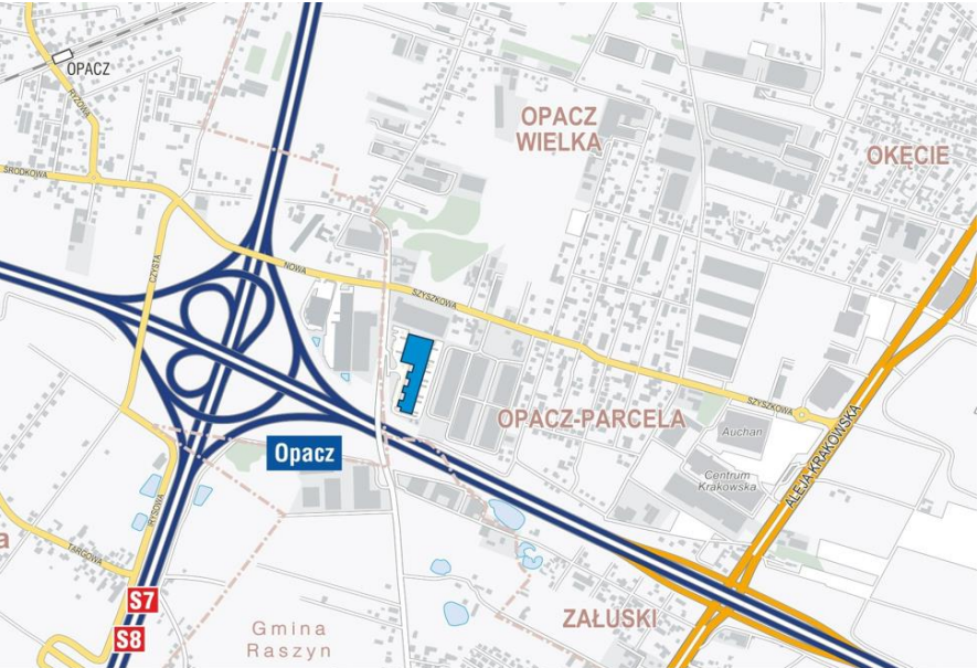 The warehouse is located in the south of Warsaw in the Okęcie district 7 km to Chopin Airport Panattoni Park City Logistics Warsaw Airport V is located right next to the Opacz junction, connecting the S2 and S7 roads The S7 expressway in this section turns into S8 Doga S2 is also the Southern Bypass of Warsaw (POW) Excellent conditions for public transport within the agglomeration Access to qualified staff Access for trucks and couriers Due to its location, there are favorable conditions for logistics companies to distribute goods in Warsaw and the surrounding towns as well as throughout Poland and Europe