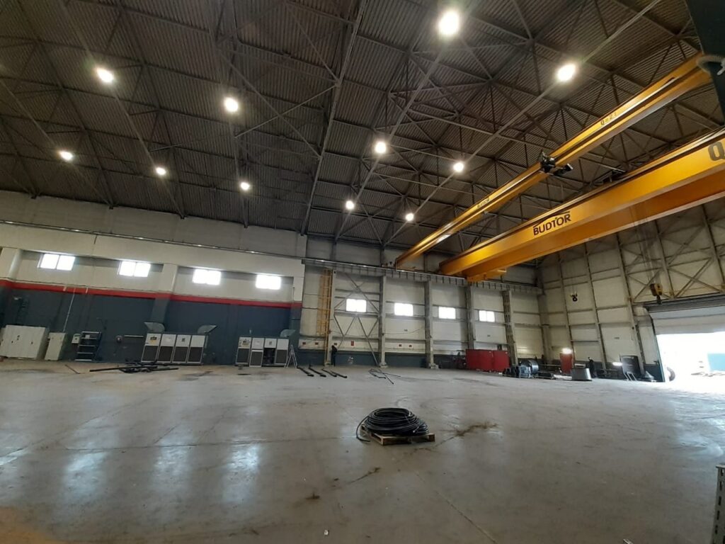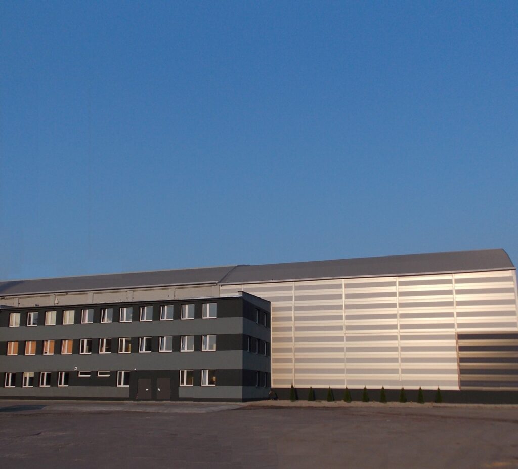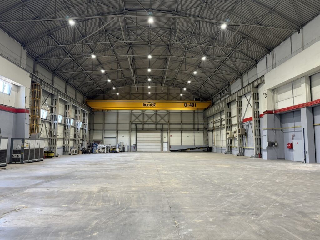 Parameters of hall no. 3: - the construction of the hall is 70% brick and 30% clad with PIR sandwich panels, - height: 10.8 to the crane hook 6.5 m, - 2 NASSAU gates (currently only one can be used), - non-dust floor 10t/m2, - roof - trapezoidal sheet, insulated with wool and secured with a PVC membrane Social and office building: - 2 floors, - PVC windows, - on the floors, tiles, panels. - air conditioning in offices,Parameters of hall no. 2: - brick structure, - height: 9.33 m to the ridge 10.43 m - 3 NASSAU gates with dimensions 4m x 5m, - 1 NASSAU gate with dimensions 4m x 4m, - non-dust floor 5t/m2, - gable roof, covered with PVC membrane.