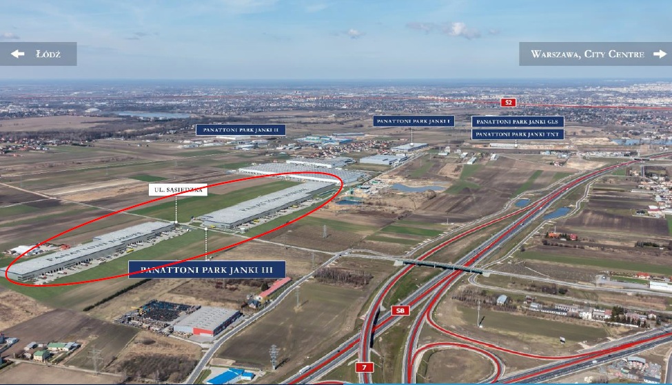 A modern warehouse for lease in Panattoni Park Warsaw South Janki, located in Janki, south of the center of Warsaw. The property is located in the vicinity of the S8 junction (Wrocław – Warsaw – Białystok) and DK 7 (Warsaw – Kraków).
