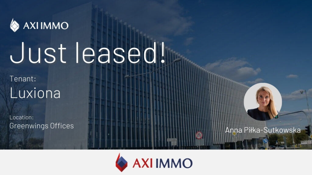 Luxiona, dostawca rozwiązań oświetleniowych dla powierzchni komercyjnych podpisała umowę najmu na 430 mkw. powierzchni biurowej w kompleksie Greenwings Offices w Warszawie. Na wynajętej przestrzeni znajdą się biura polskiego oddziału Luxiony oraz showroom jej rozwiązań oświetleniowych. W transakcji najemcę reprezentowała największa polska firma doradcza na rynku nieruchomości komercyjnych AXI IMMO.