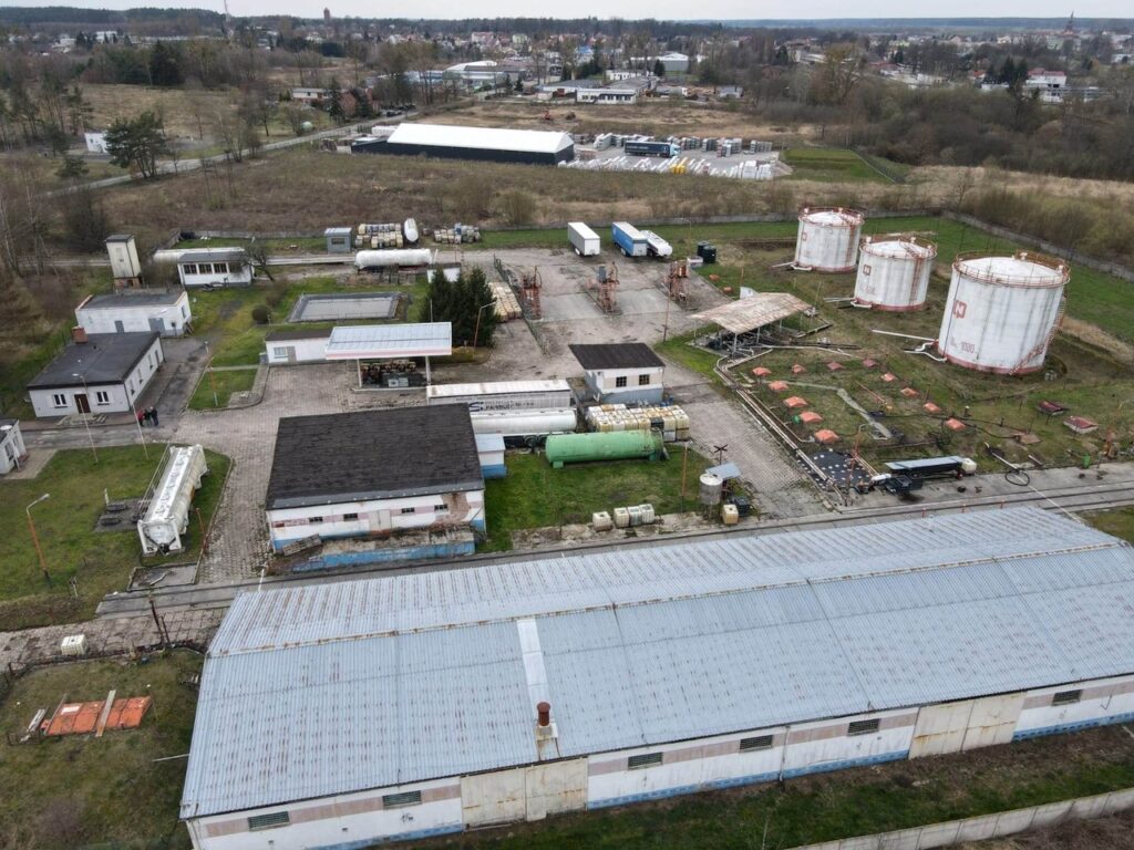 Na sprzedaż lub wynajem działka o powierzchni 22 145 mkw. z istniejącą, nieaktywną bazą paliwową, z własną bocznica kolejową, zlokalizowana w strefie przemysłowej w Złocieńcu.