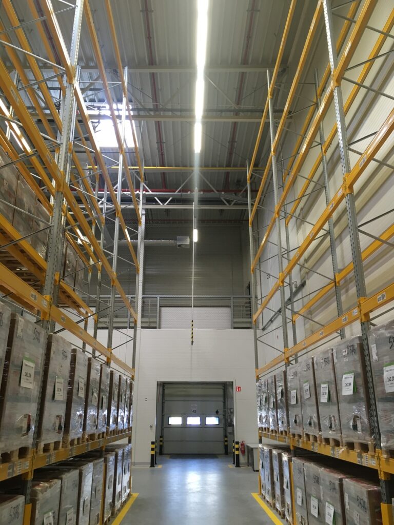 Wysokość składowania w magazynie to 10 m, dzięki temu można zastosować regały wysokiego składowania