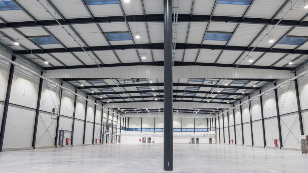Powierzchnia magazynu doświetlona światłem dziennym - świetliki