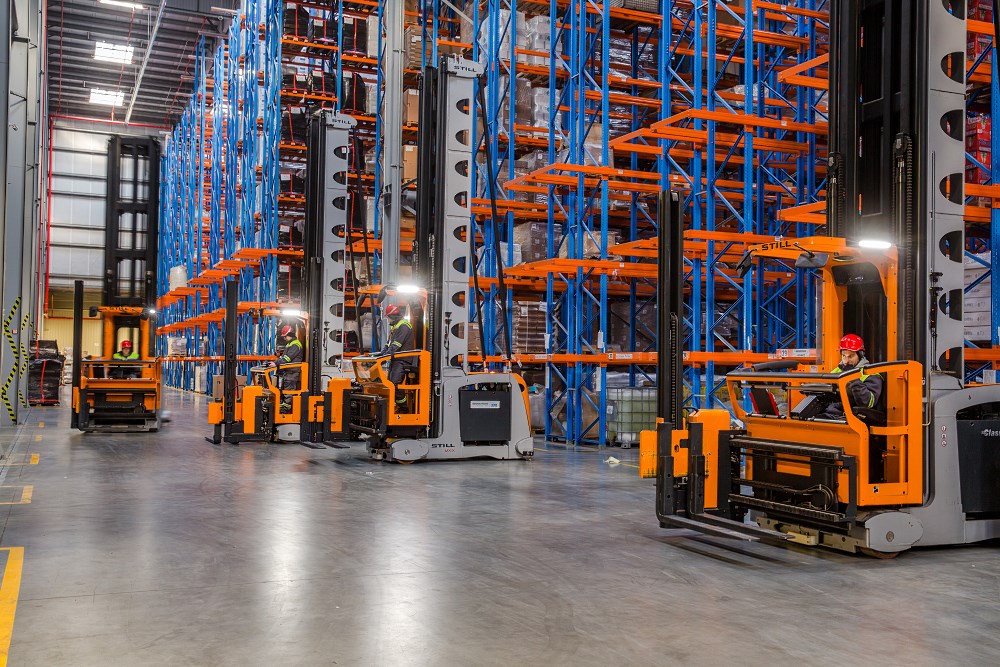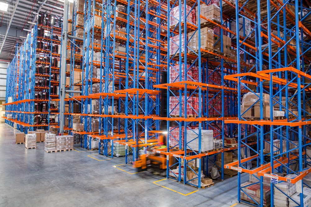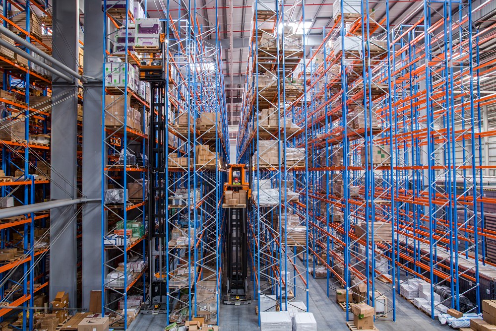Powierzchnia posiada specjalistyczne regały, co daje 40 000 miejsc składowych.