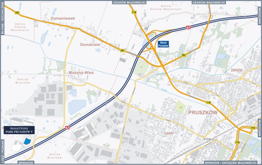 Panattoni Park Pruszków V położony jest przy wjeździe na Autostradę A2, która prowadzi od granicy z Niemcali do granicy z Białorusią.
