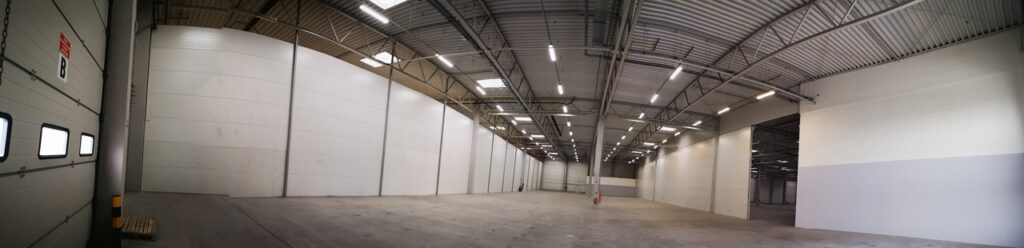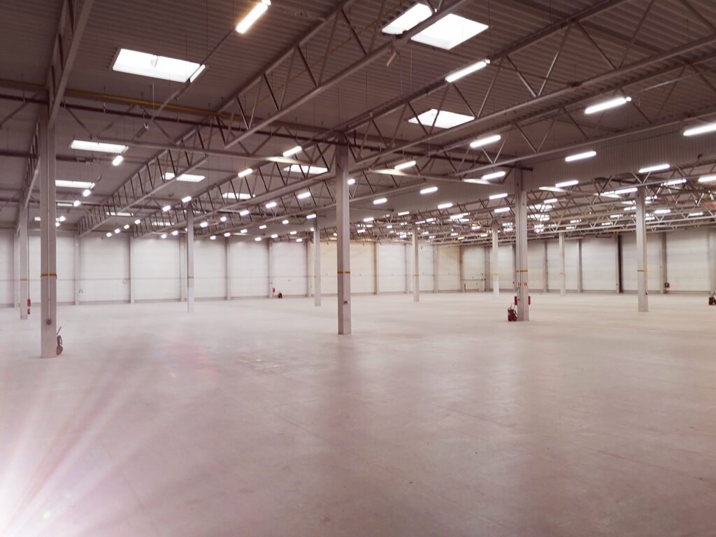 Magazyn ogrzewany Oświetlenie LED Posadzka bezpyłowa Powierzchnia magazynowa doświetlona światłem dziennym poprzez świetliki dachowe