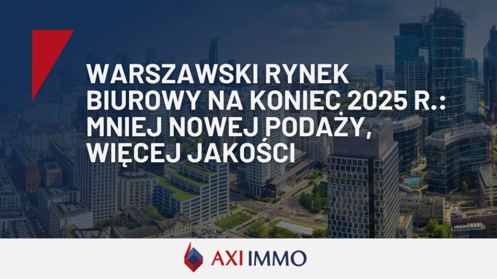 Tomasz Michalczyk, Dyrektor Działu Powierzchni Biurowych, AXI IMMO, podsumowuje: „Końcówka 2025 roku potwierdza, że warszawski rynek biurowy coraz mocniej opiera się na selektywności i jakości. Dla właścicieli oznacza to konieczność dalszych inwestycji w modernizacje i dopasowanie budynków do realnych potrzeb najemców, a dla firm planujących zmianę biura potrzebę wcześniejszego planowania i świadomego podejścia do wyboru lokalizacji”.